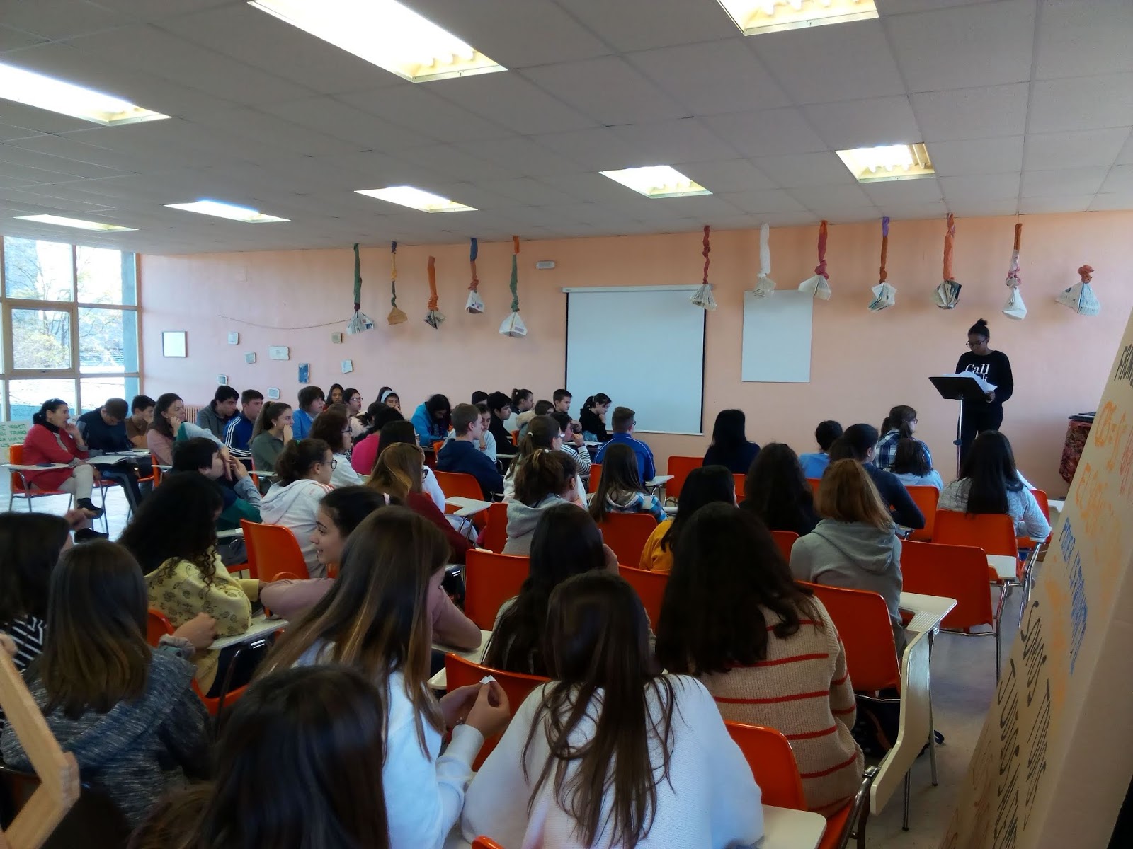 Aquí os dejamos el cartel, las fotos de quienes recitaron y los poemas recitados en este último Jueves Poético dedicado al 25N, Día por la Eliminación de la violencia de género. También tenéis el vídeo con los carteles y murales que han vestido las paredes del centro, así como imágenes del Gran Lazo Violeta que se realizó el viernes 30N en el vestíbulo, mientras cantábamos La Puerta Violeta.